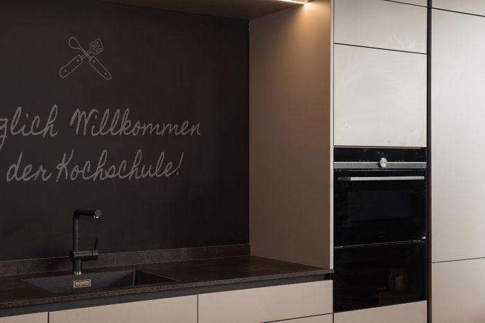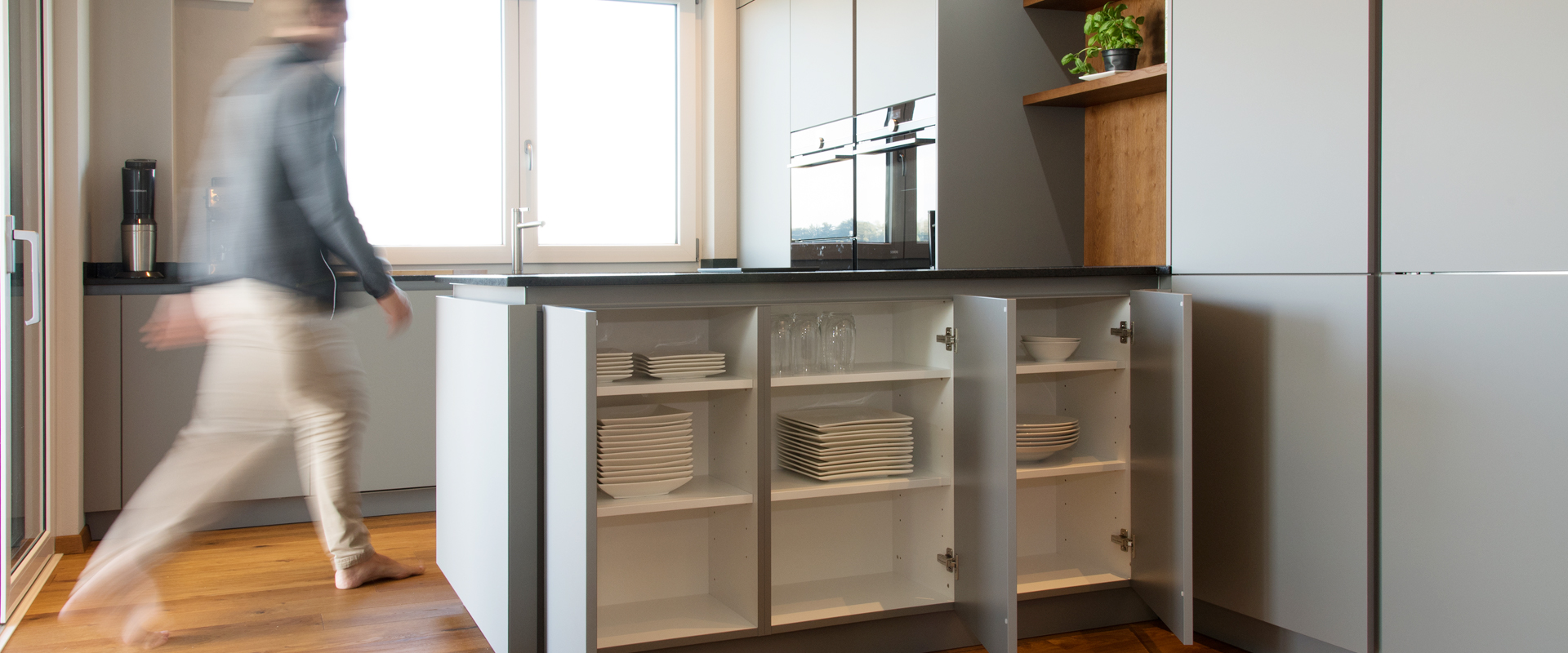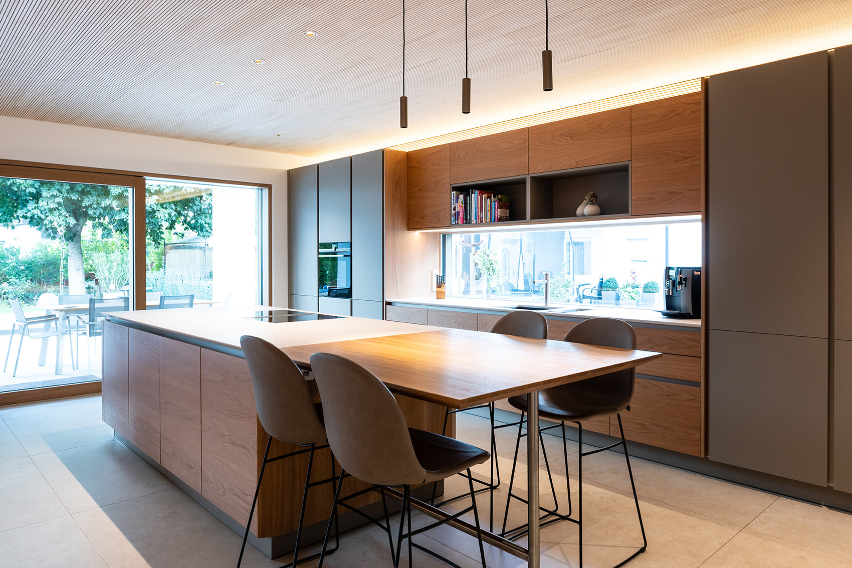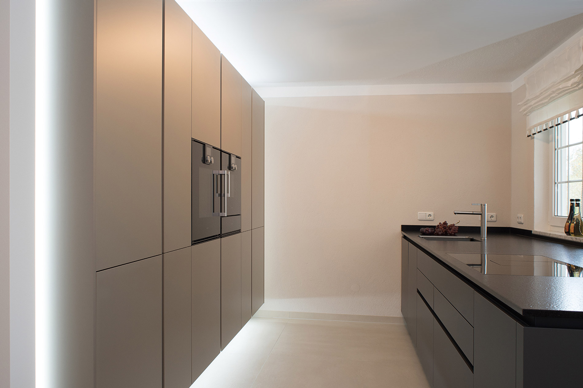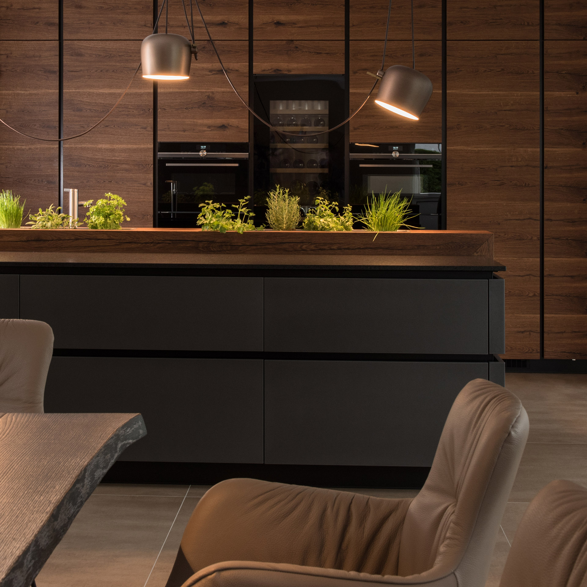 Möchten Sie sich gerne umsehen und den Flair unser Küchenwelten auf sich wirken lassen? Materialien und Ober ächen erfühlen und live erleben? Die Stimmung, die unterschiedlich gestaltete Küchen ausstrahlen, erfahren? Besuchen Sie uns in unseren modern gestalteten Ausstellungsräumen. Unsere aktuellen Musterküchen und neue Küchentechnologie sowie ausgezeichntete Beratung erwarten Sie in der Zimmererstraße 7 in 84048 Mainburg.