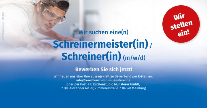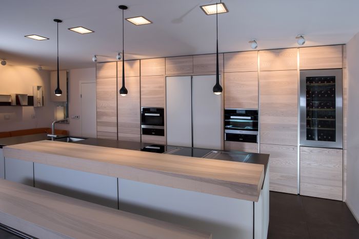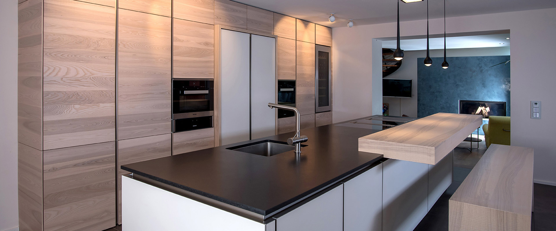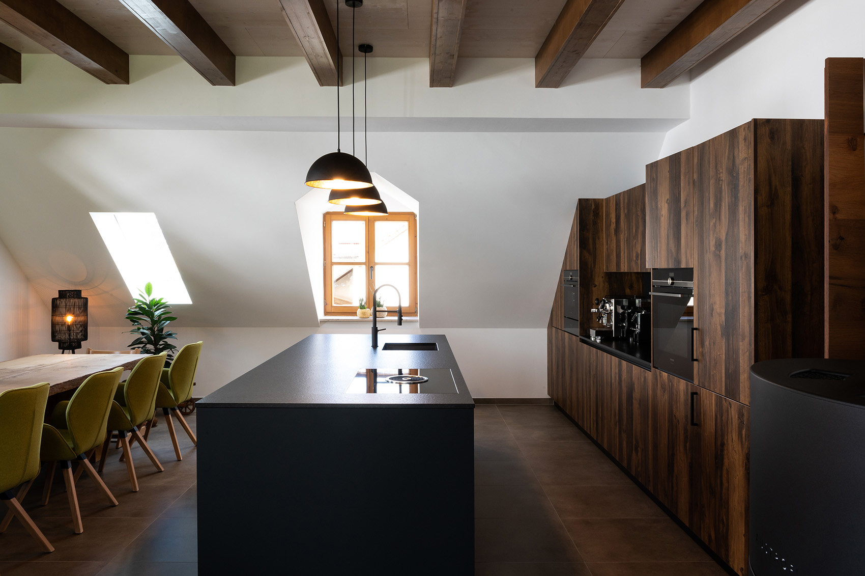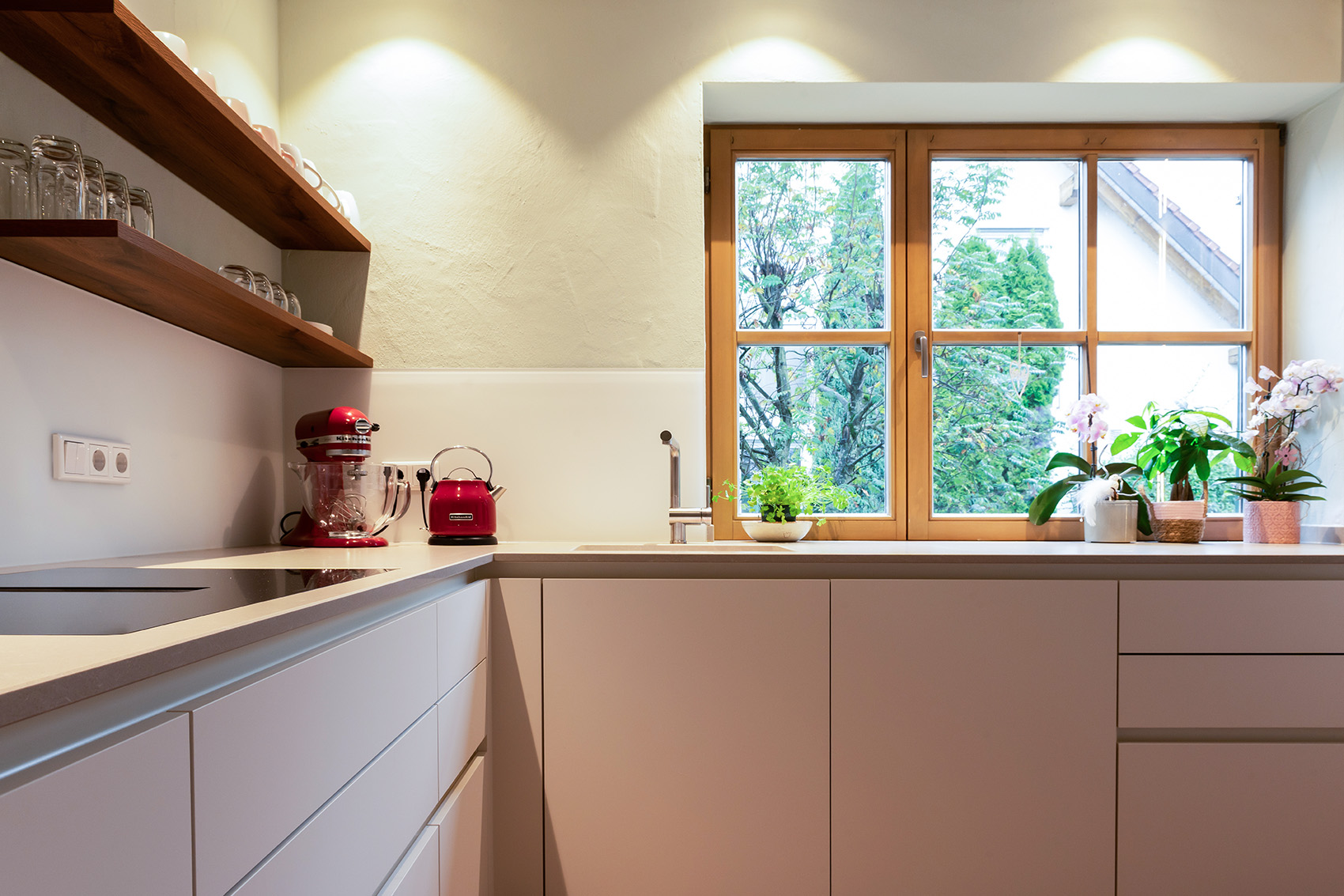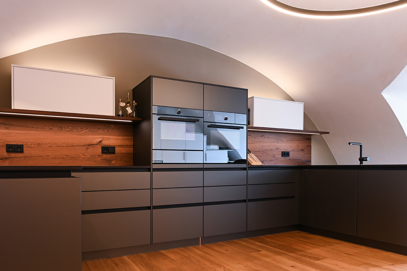 Möchten Sie sich gerne umsehen und den Flair unser Küchenwelten auf sich wirken lassen? Materialien und Ober ächen erfühlen und live erleben? Die Stimmung, die unterschiedlich gestaltete Küchen ausstrahlen, erfahren? Besuchen Sie uns in unseren modern gestalteten Ausstellungsräumen. Unsere aktuellen Musterküchen und neue Küchentechnologie sowie ausgezeichntete Beratung erwarten Sie in der Zimmererstraße 7 in 84048 Mainburg.