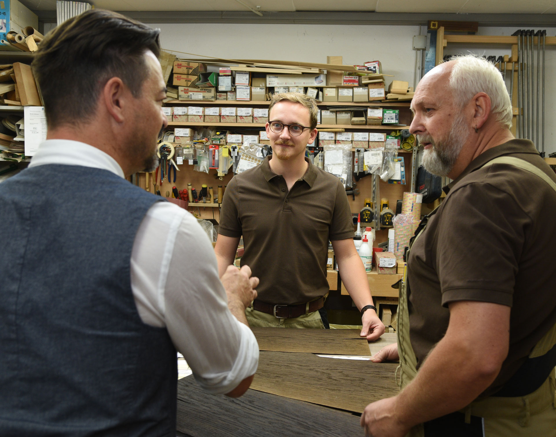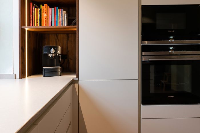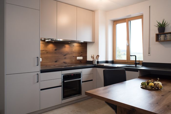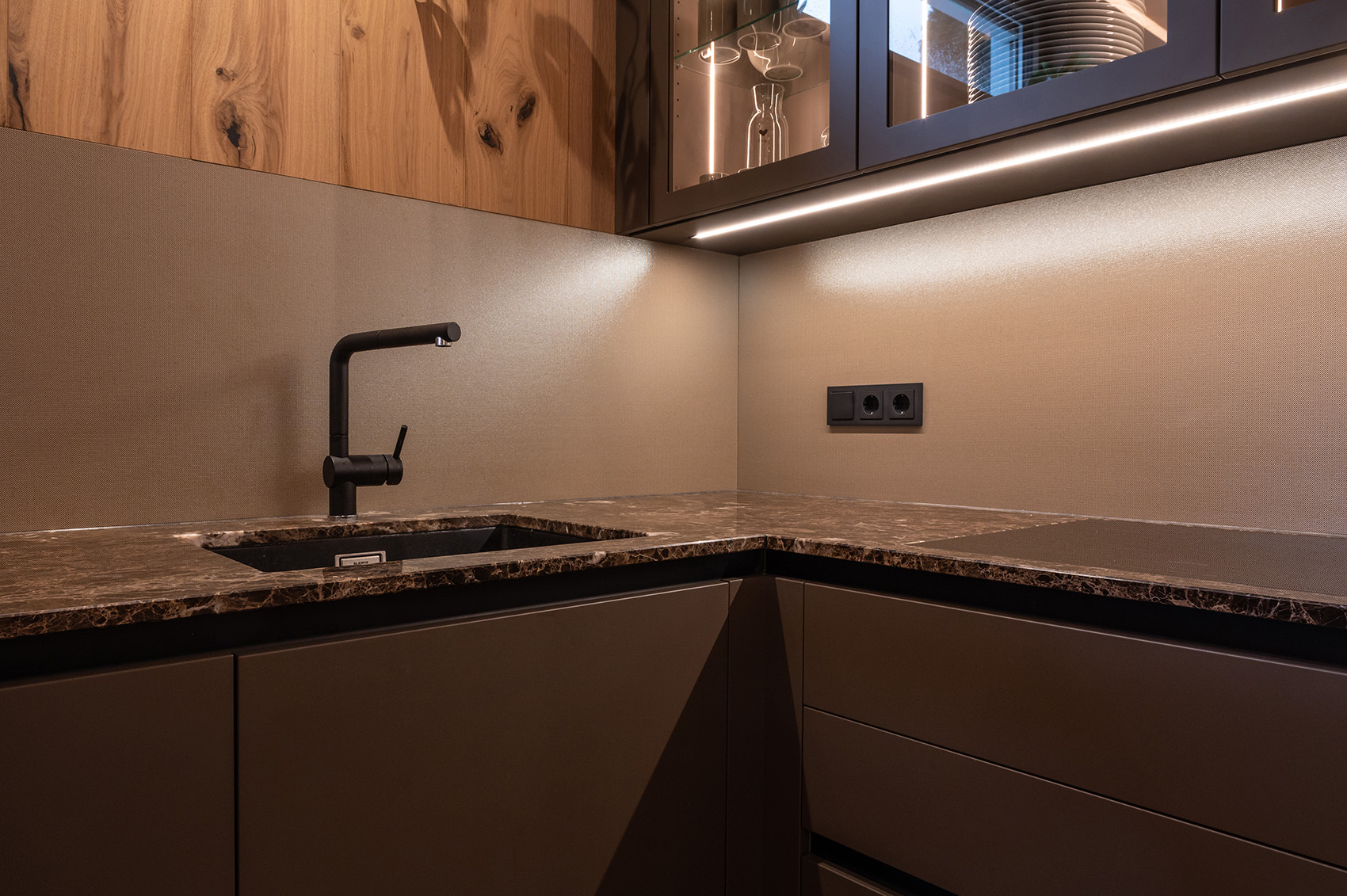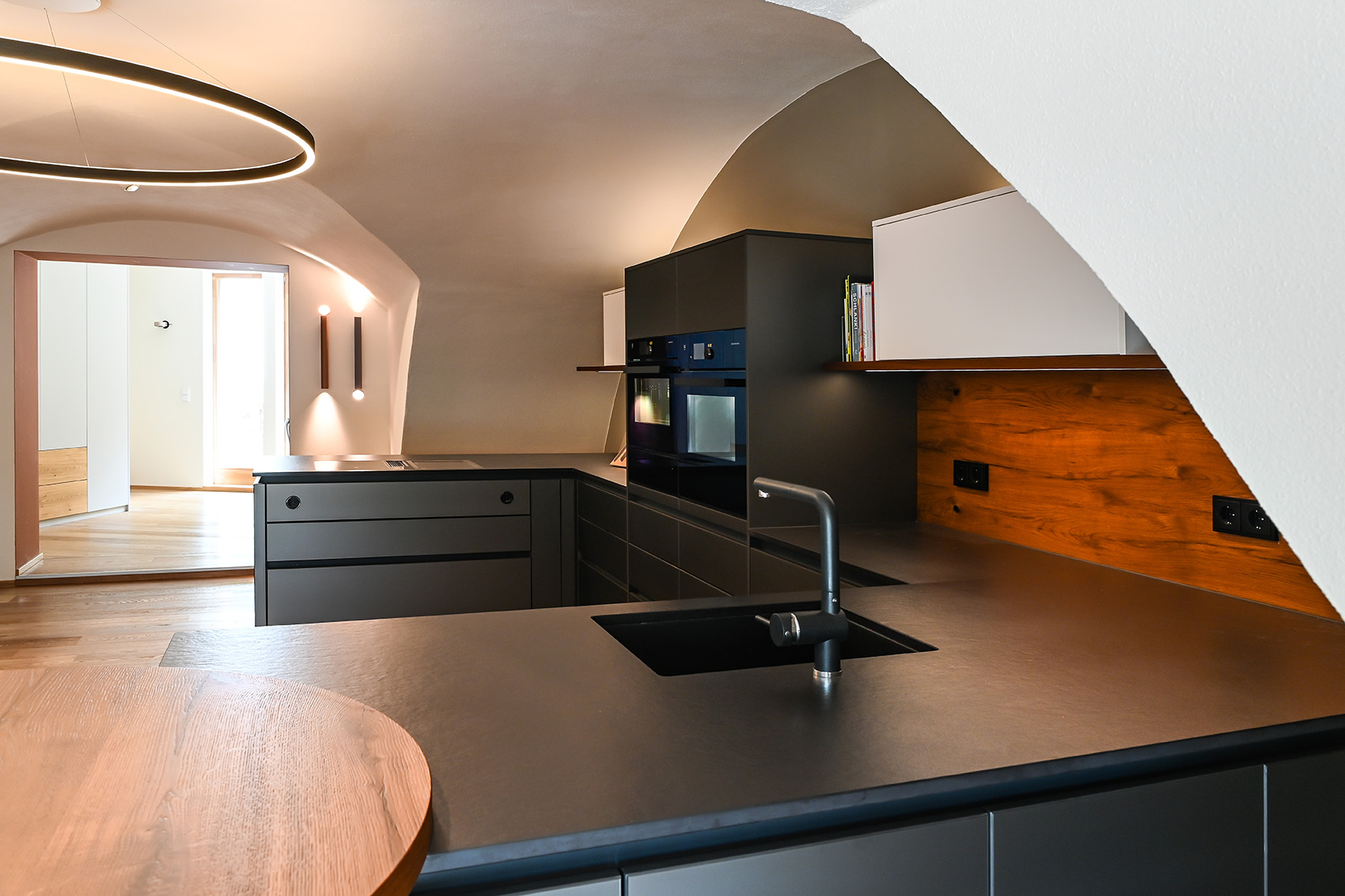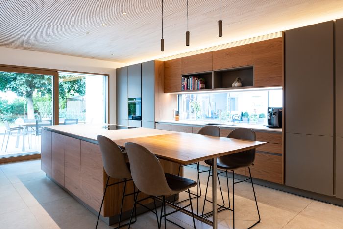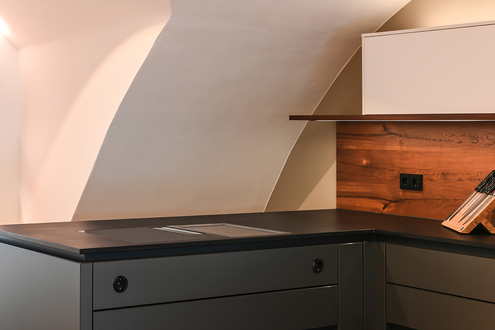 Möchten Sie sich gerne umsehen und den Flair unser Küchenwelten auf sich wirken lassen? Materialien und Ober ächen erfühlen und live erleben? Die Stimmung, die unterschiedlich gestaltete Küchen ausstrahlen, erfahren? Besuchen Sie uns in unseren modern gestalteten Ausstellungsräumen. Unsere aktuellen Musterküchen und neue Küchentechnologie sowie ausgezeichntete Beratung erwarten Sie in der Zimmererstraße 7 in 84048 Mainburg.