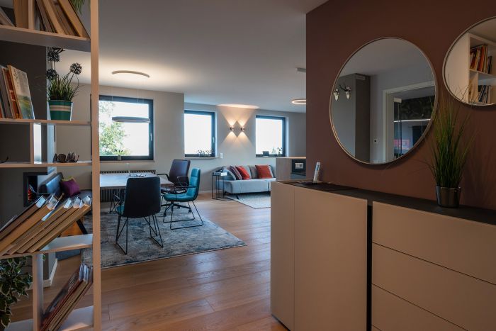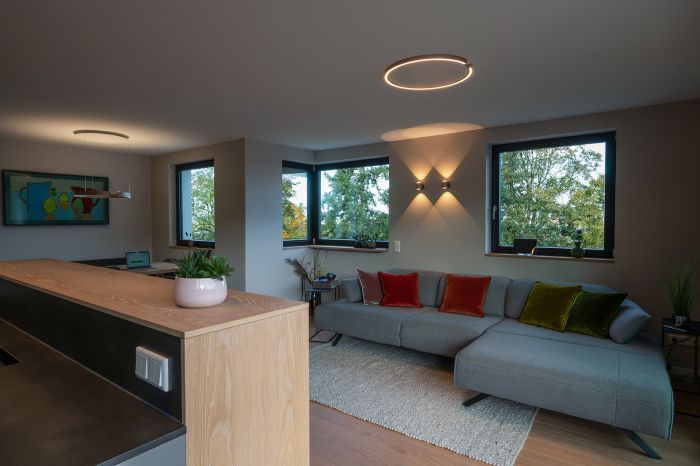Das Markenzeichen aller COLLECTION Küchen aus dem Hause Münsterer: Wir planen den Raum ganzheitlich, inklusive Licht und funktioneller Nutzung über das Kochen hinaus.