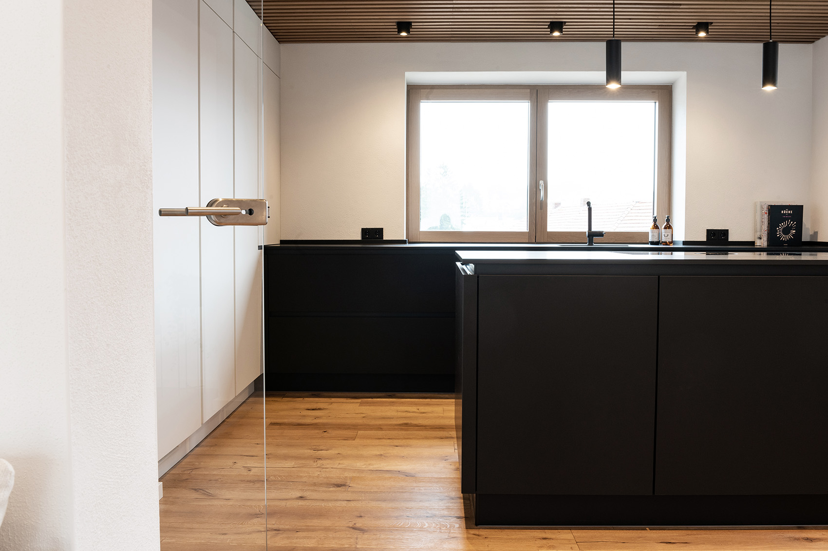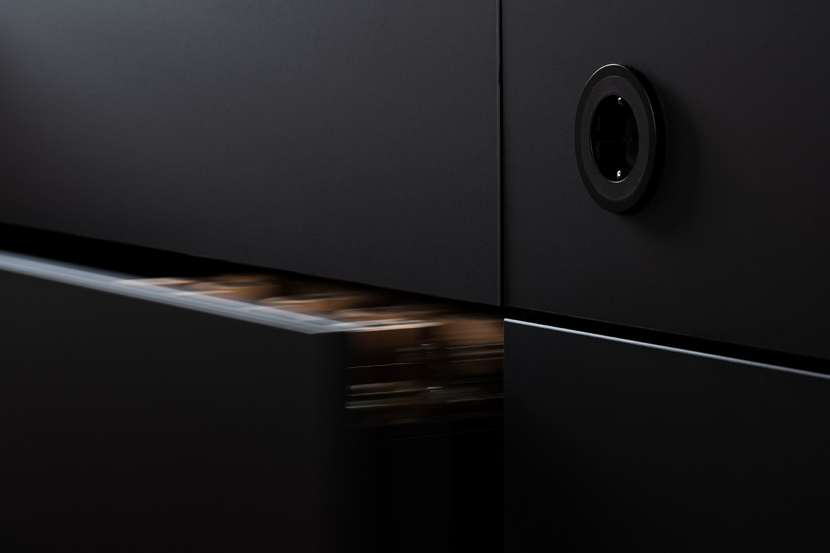 Wer es dunkel mag, wird schwarze Fronten mit Fenix-Beschichtung lieben. Die metallische Spezialbeschichtung sorgt für absolute, supermatte Oberflächen.
