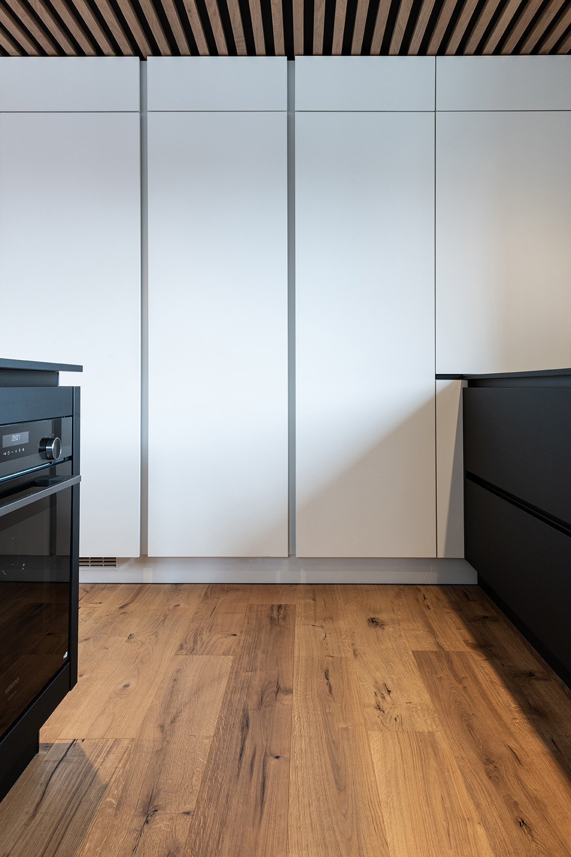 Hier glänzt nichts, aber das ist Absicht. Die spezielle Metallbeschichtung reduziert die Lichtreflexion entlang der edlen Küchenfronten. Staub, Flecken oder Fingerabdrücke haben auf dieser Oberfläche keine Chance. Kein Stäubchen trübt den futuristischen Stil der minimalistisch gehaltenen Küchenfronten.