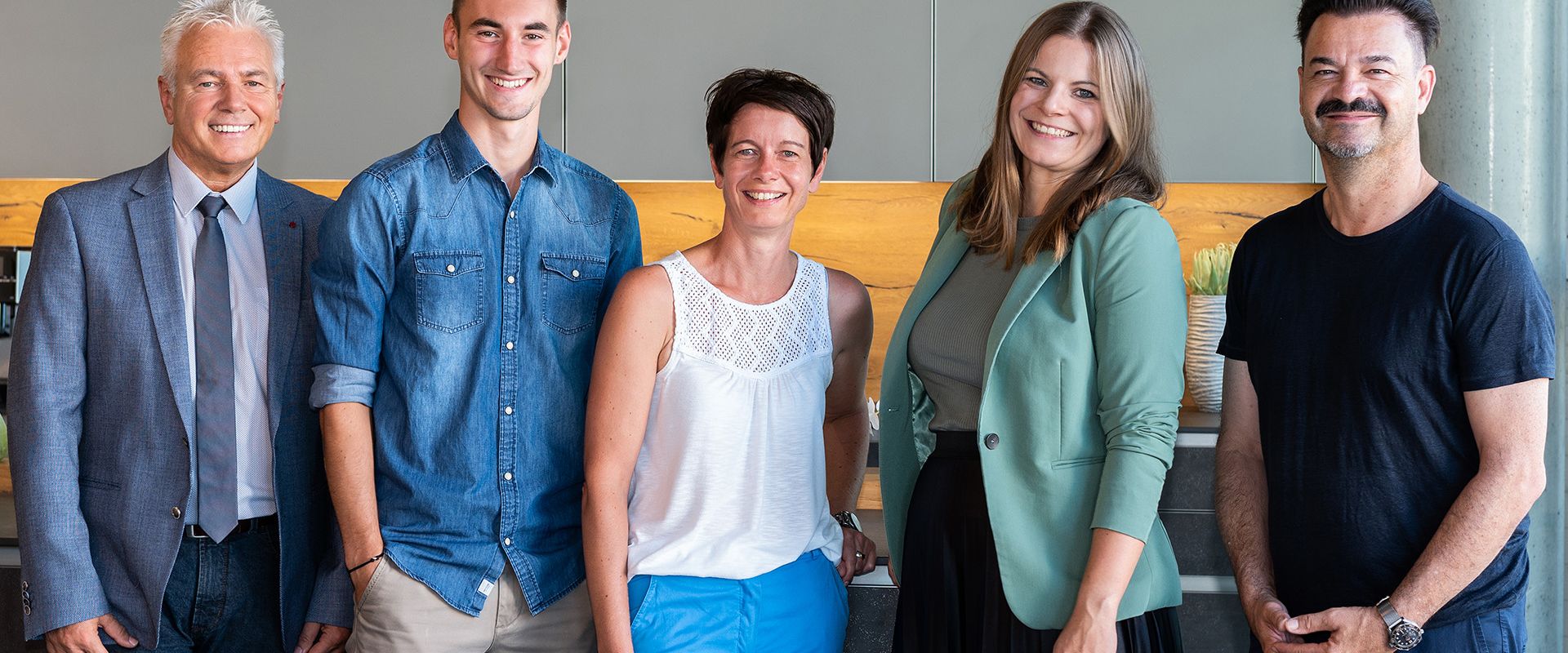 Unser Team hat seit kurzem tatkräftige Verstärkung erhalten. Wir freuen uns sehr, dass wir mit Nanni Littel-Wöhl (Mitte) die technische Organisation und mit Kati Gruber (2. v.r.) die kaufmännische Organisation in kompetenten Händen wissen dürfen. Felix Fersch (2. v.l.) wird unser Team bei der technischen Ausarbeitung vervollständigen.Auf unserer Team-Seite finden Sie unser gesamtes Team in der Übersicht.