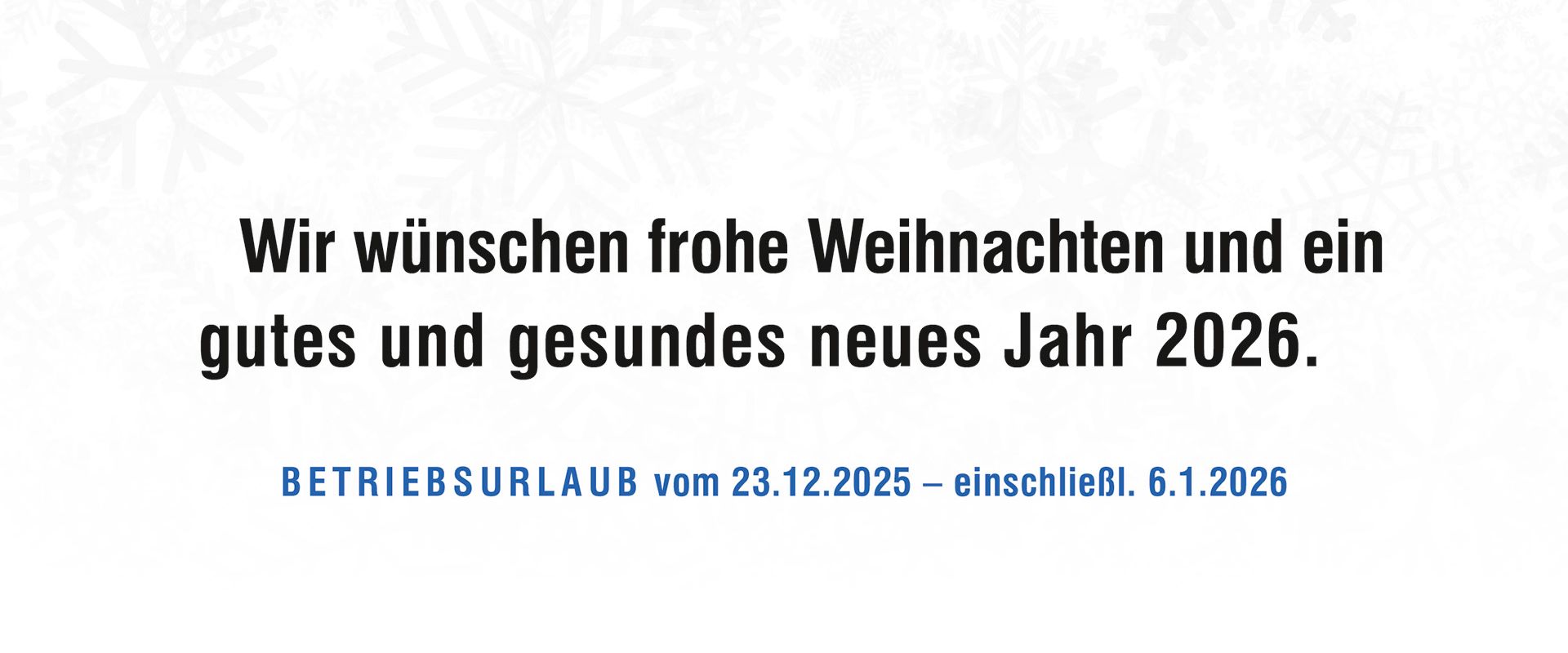 Liebe Kundinnen und Kunden,wir machen vom 23. Dezember 2025 bis einschließlich 6. Januar 2026 Betriebsurlaub. In dieser Zeit bleibt unser Küchenstudio geschlossen. Ab dem 7. Januar 2026 sind wir zu den gewohnten Öffnungszeiten wieder für Sie da. Wir wünschen Ihnen eine schöne Weihnachtszeit und einen guten Start ins neue Jahr!